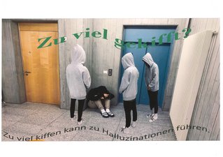 Die entstandenen Plakate der Jugendlichen zeigen vielfältige und spannende Aspekte der Suchtthematik.